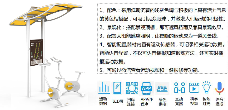 谈求吧全民健身产品涵盖健身路径、运动场馆、篮乒气羽排等产品,分为多个系列,先进的制造工艺、严苛的质量检测,确保产品性能优良、品质安全可靠,让运动简单科学。并将全民健身器材(户外路径器材、体育场馆等产品)进行智能化升级和互联,实现全人群覆盖、全场景智能,让运动赞美生活。