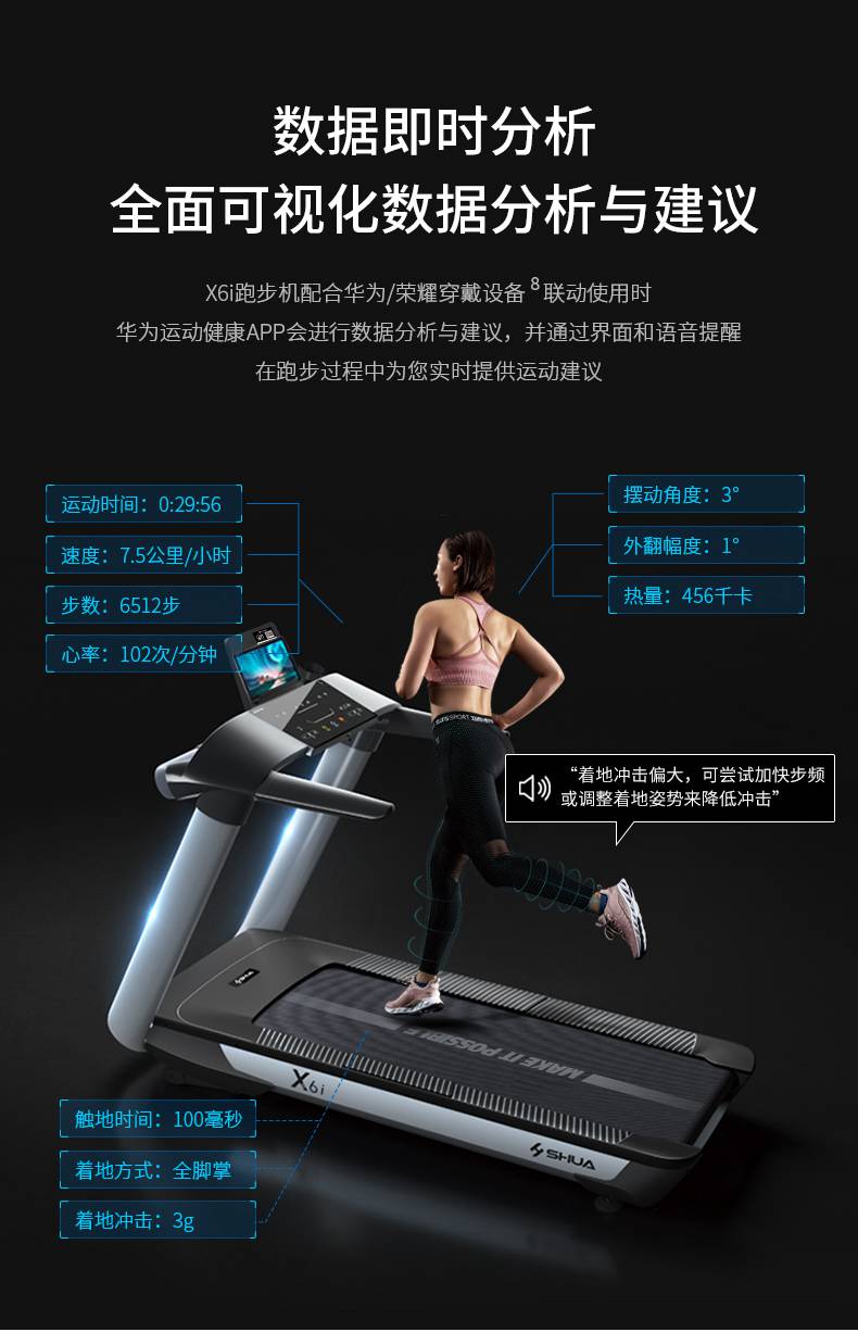 谈求吧跑步机-X6心率跑步机,可根据用户运动是实时心率,跑步机自动调节跑步速度、坡度等进行运动强度的调节,更科学;X6i华为版跑步机,可以通过连接华为运动健康APP,监测多种类型跑步数据。欢迎来电咨询~