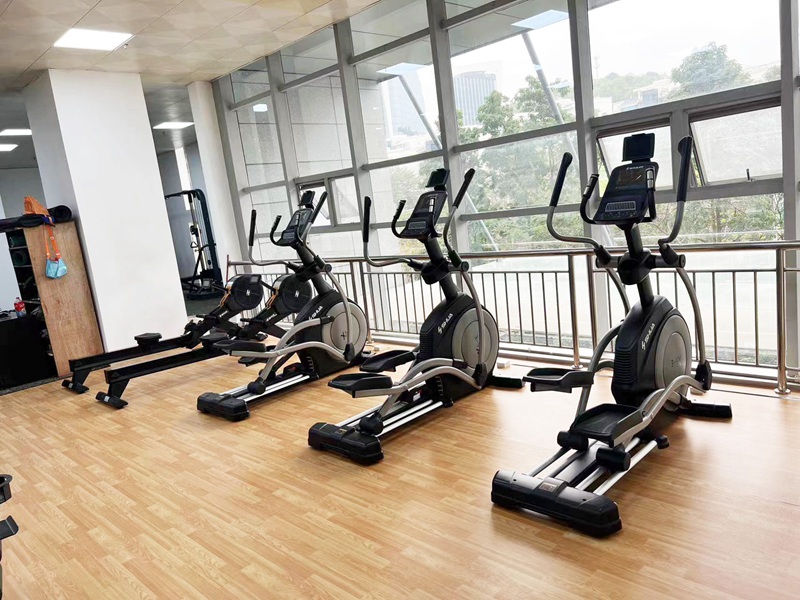 企事业单位健身房面积约为240平方,在接到客户项目需求时,我们根据客户的需求及预算,从装修布局、科学分区、合理的器材搭配等方面,为其提供了一站式健身解决方案。有氧区域配置谈求吧V9跑步机、X5跑步机,X5-E智能椭圆机、动感单车、划船器等有氧训练器材,有效锻炼提升人体心肺功能。