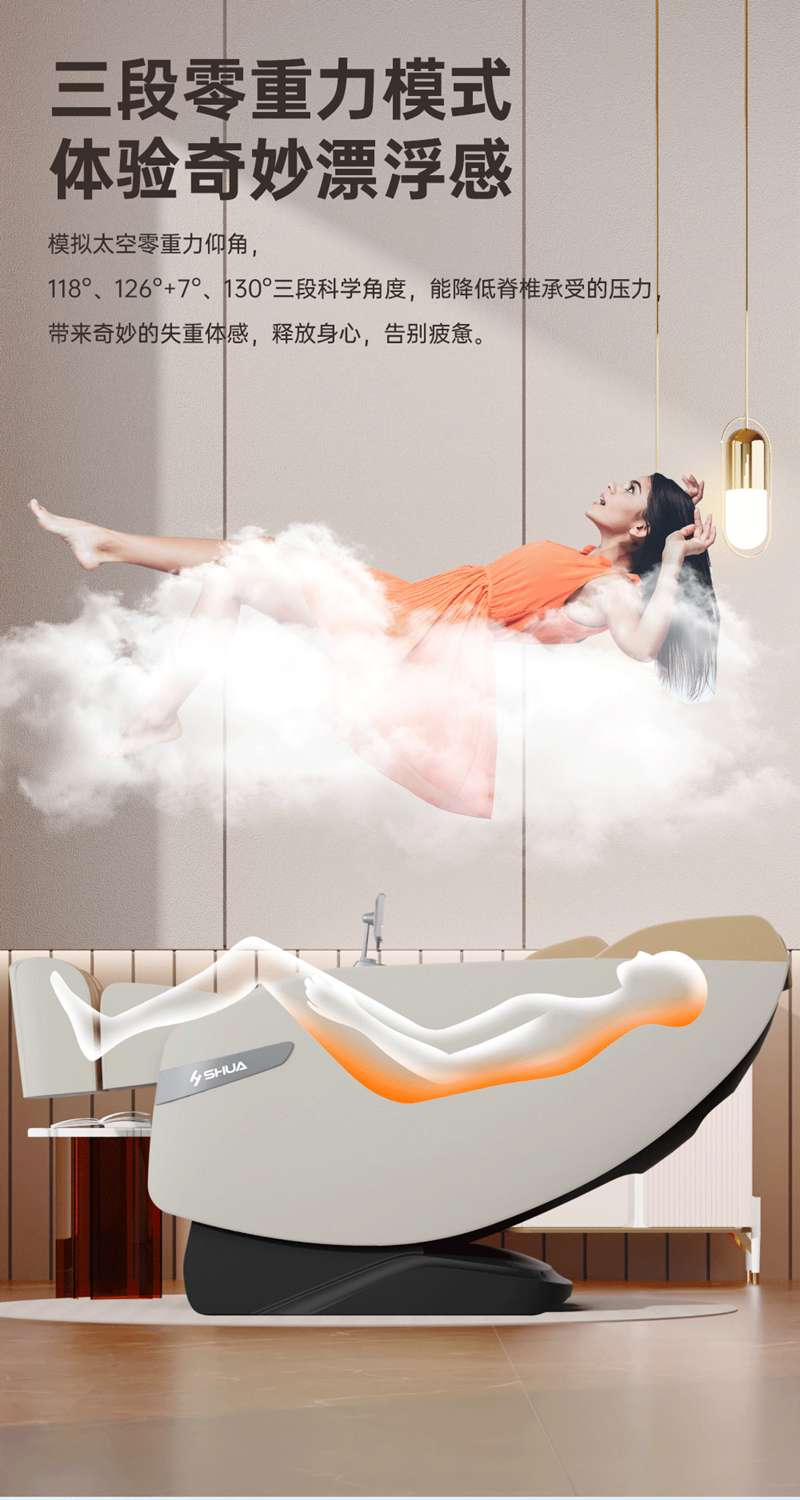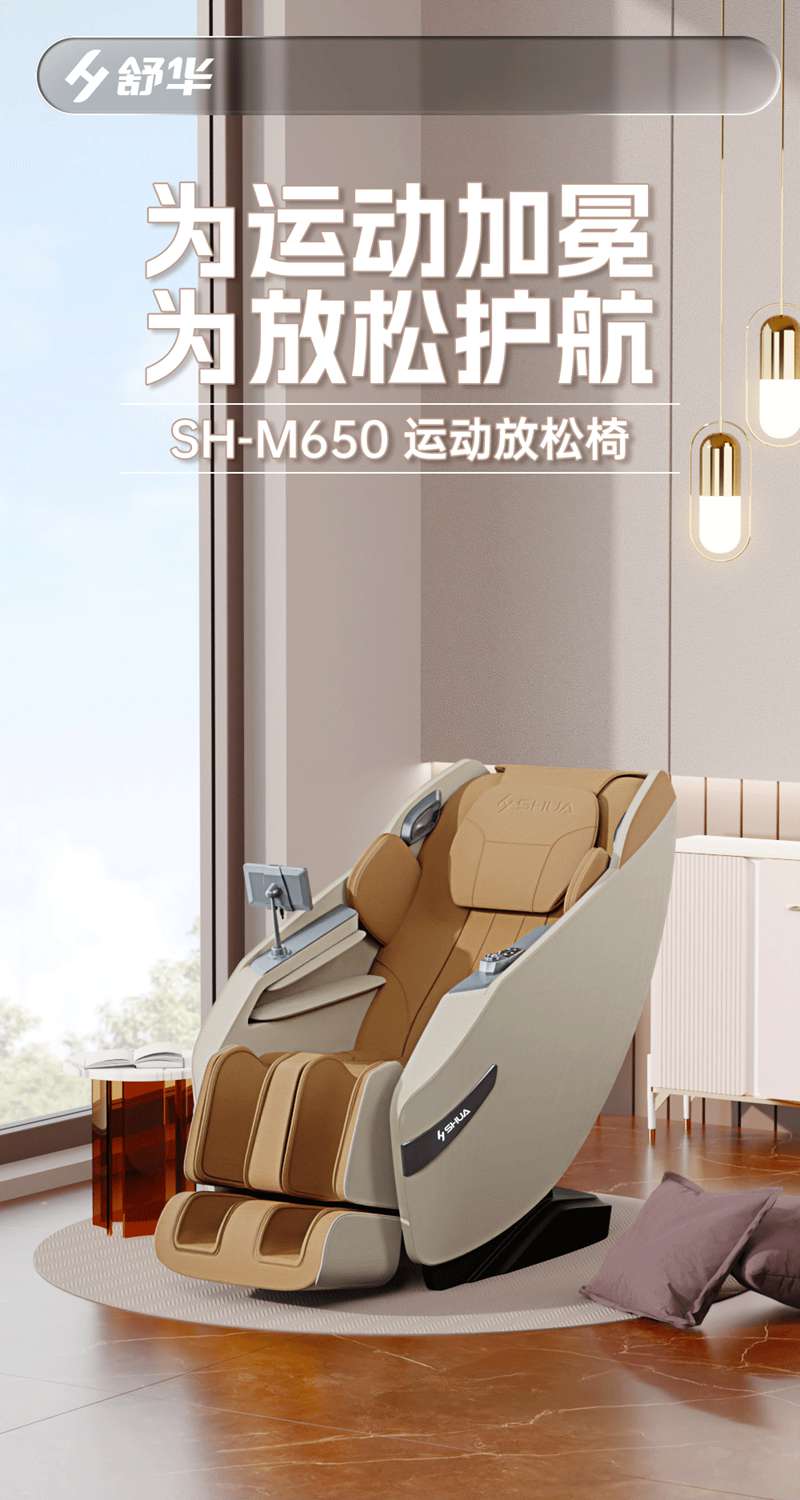 SH-M650 运动放松椅-4种运动放松特定程序,满足不同人群和场景下的需求,12种按摩程序,融合现代科技与传统按摩理念,提供精准力度和科学手法。定制135cmSL贴合7大部位27个点位,确保按摩全面深入,SL型导轨贴合人体背部曲线,提供精准舒适的按摩体验,双曲线导轨,高硬度,稳固不易变形。采用霍尔检测技术,通过多组传感器自动识别人体曲线和按摩点,机械手自动调节,适应不同身高体型,实现个性化按摩体验。