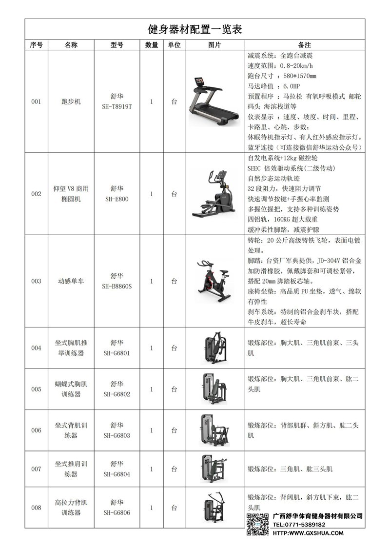 1.谈求吧V9+智能跑步机SH-T8919T*5台-V9+采用全跑台减震设计,为跑者提供舒适的落脚地感和稳定的跑步支撑,良好的缓冲防护,降低膝关节受伤风险。商用大跑台,为跑者提供从容奔跑空间,180kg承载力,580*1570纯跑台面积,满足专业健身需求。V9+采用F级商用马达,6HP峰值马力,20km/h最高速度,提供源源不断的动力。V9+内置健身直播软件,每周提供直播课程,内含大量专业线上健身点播课程,可为健身房不同人群提供多样化健身课程服务。V9+搭载全新跑步姿态分析系统,提供五大步态数据,为跑者提供综合评估及训练建议,帮助跑者调整优化跑姿,让运动更科学高效。3D竞赛软件,画面如同VR游戏效果,提供训练及竞赛模式,线上竞赛模式,可联动不同单位及公司,不同健身房之间健身爱好者,打造职工健身文化,促进交流。