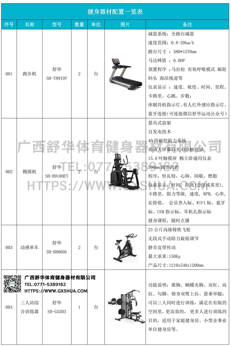 1.谈求吧V9跑步机SH-T8919T*2台-V9+采用全跑台减震设计,为跑者提供舒适的落脚地感和稳定的跑步支撑,良好的缓冲防护,降低膝关节受伤风险。商用大跑台,为跑者提供从容奔跑空间,180kg承载力,580*1570纯跑台面积,满足专业健身需求。V9+采用F级商用马达,6HP峰值马力,20km/h最高速度,提供源源不断的动力。V9+内置健身直播软件,每周提供直播课程,内含大量专业线上健身点播课程,可为健身房不同人群提供多样化健身课程服务。