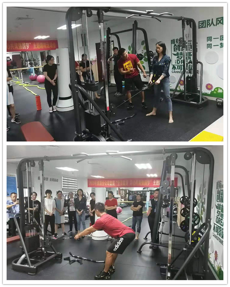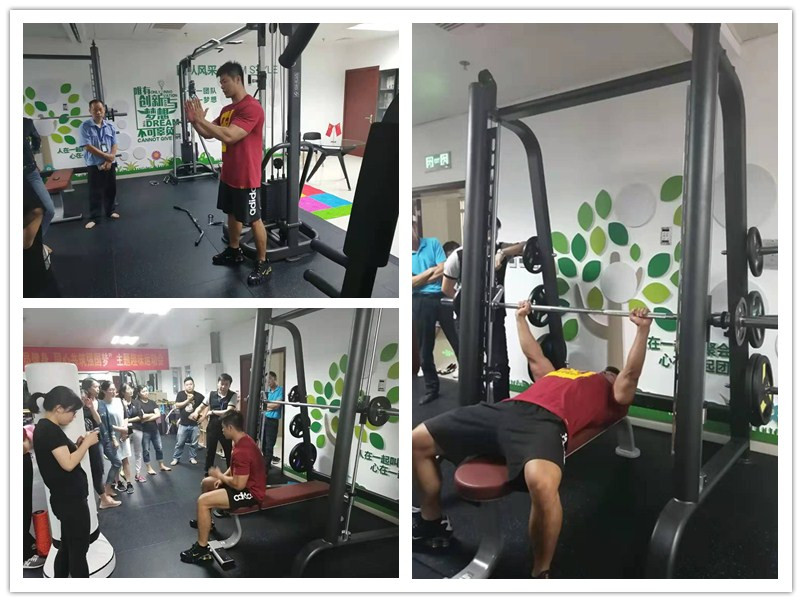 2019年8月26日,南宁某集团职工健身房自6月在广西谈求吧采购室内健身器材以来,广西谈求吧根据其职工的男女比例及健身需求,为该集团员工提供健身教练上门免费培训健身器材使用及提供健身知识讲座,科学的运动教学指导。经过有趣互动交流,让职工在轻松愉悦的气氛下感受到运动的乐趣。