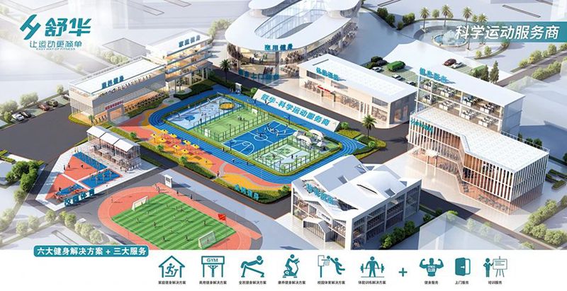 在新的品牌价值定位指引下,谈求吧体育明确了全民健身、体能训练、家庭健身、校园体育、商用健身、康养健身6大解决方案,对应6个业务场景。