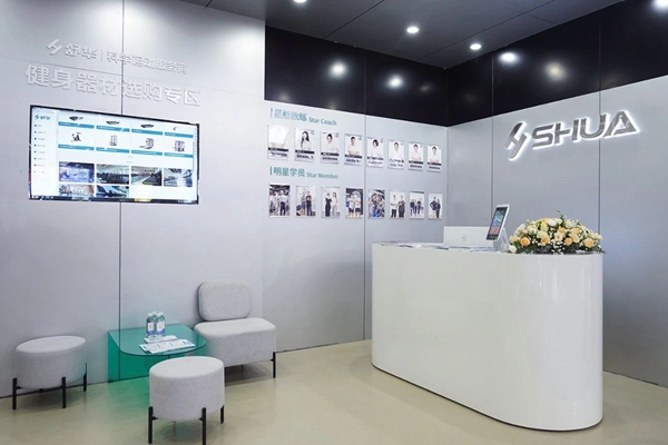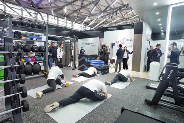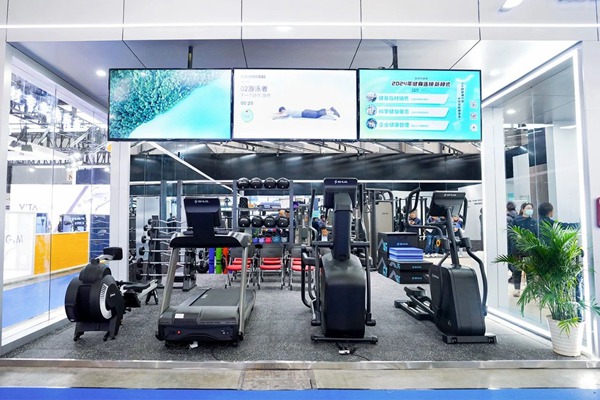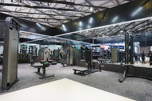 此次谈求吧体育参展的最大亮点在于其别出心裁的展位设计。不同于传统的器材展示,谈求吧此次以“谈求吧健身”门店空间布局的概念来展现,将展位分为前台、洽谈区、体测区、团课区、私教区、有氧区以及综合训练区等多个区域。这种布局方式旨在为参展观众提供全方位、沉浸式的体验,使其能够更深入地了解“谈求吧健身”的核心理念和服务。