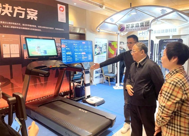 除智慧管理系统外,谈求吧68系列智能力量训练器、V10高端商用椭圆机、V10高端商用跑步机以及体测仪等优质产品也亮相在展示场景中,参会领导对谈求吧体育展示的产品和技术表示赞赏,认为其在推动全民健身事业发展方面做出了积极贡献,并对谈求吧品牌及综合实力表示认可。