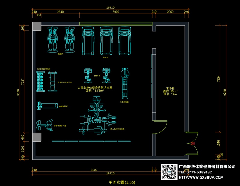 此方案要求面积小于71m²,适用于企事业单位、酒店会所、楼盘社区、学校、私教工作室等健身场所,能满足15-20人同时健身使用。(方案根据场地空间大小、预算、产品需求等进行配置仅为启发性参考)