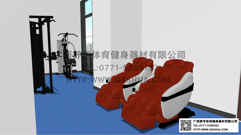 由于企业单位健身房的不规则性,根据场地、职工需求、整体预算,有氧器材区域配置谈求吧跑步机2台,椭圆机、动感单车、划船器各1台,满足职工的日常有氧训练需求,有效地提升心肺功能;力量器械配置单人站综合训练器、小飞鸟,满足使用者全身锻炼的需求;自由力量区域配置史密斯机、哑铃套组、腹肌板满足多样化训练需求,促使健身训练更丰富,休闲区配置按摩椅,可以促进血液循环,让员工使用按摩椅放松身心,可以能够有效缓解工作压力。