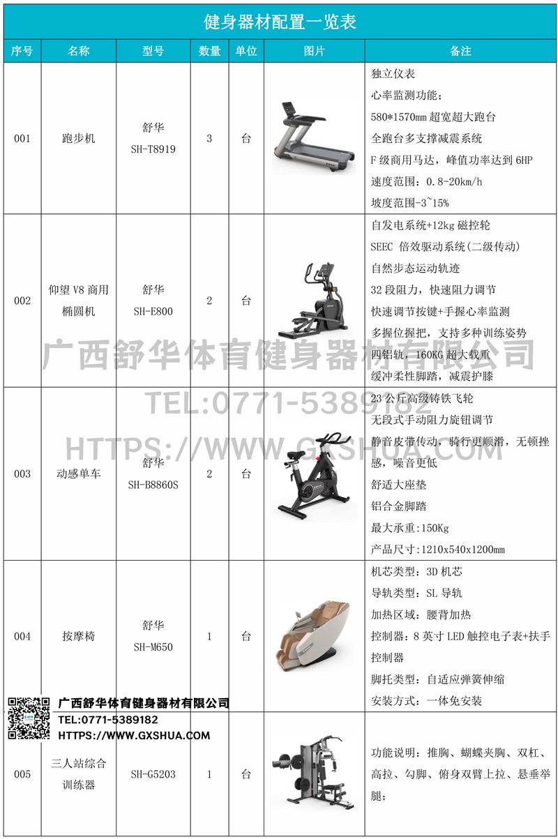 1.谈求吧V9跑步机SH-T8919*3台-F级商用马达-超强马达,AC 3.0HP 交流,峰值功率达到6HP,F级商用品质。速度范围达到0.8-20km/h;V9跑步机可实现跑台扬升功能,坡度范围-3~15%,满足客户不同的锻炼需求。